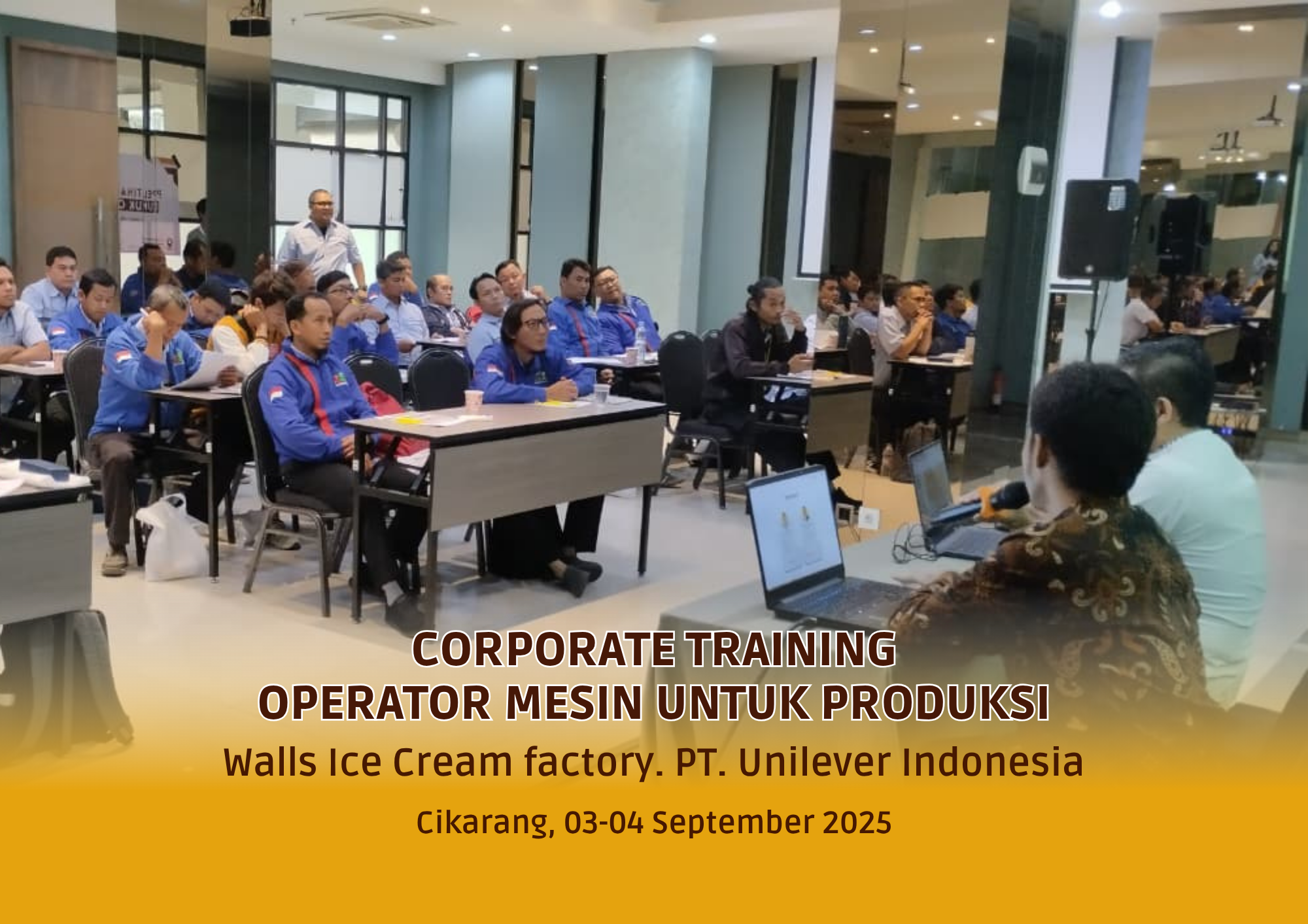 Pelatihan Operator Mesin dilaksanakan oleh PT. Unilever Indonesia Tbk – Walls Ice Cream Factory pada tanggal 3–4 September 2025 di Cikarang. Kegiatan ini bertujuan untuk meningkatkan kemampuan operator dalam mengoperasikan dan merawat mesin produksi es krim sesuai dengan standar mutu dan keselamatan kerja Unilever. Pelatihan mencakup pemahaman teori, praktik langsung di area produksi, serta simulasi troubleshooting untuk memastikan operator mampu bekerja secara efektif, efisien, dan aman di lingkungan pabrik.